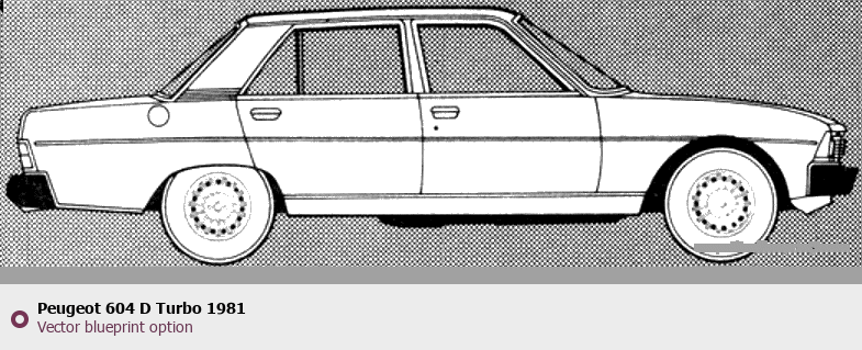 Raster blueprint of the 1981 Peugeot 604 D Turbo Tag. This free downloadable image can be used for graphic projects, digital design, and 3D modeling. The file provides accurate exterior proportions of the vehicle. Model year: 1981. Body type: Tag.
