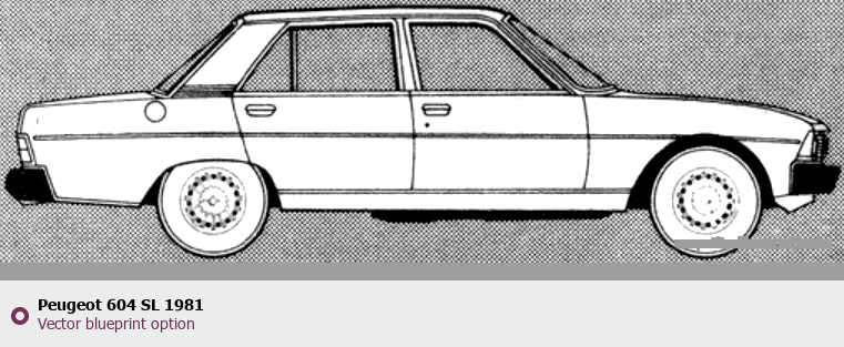 Raster blueprint of the 1981 Peugeot 604 SL Tag. This free downloadable image can be used for graphic projects, digital design, and 3D modeling. The file provides accurate exterior proportions of the vehicle. Model year: 1981. Body type: Tag.