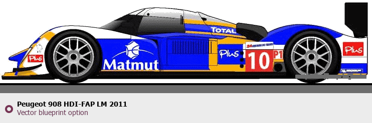 Raster blueprint of the 2011 Peugeot 908 HDI-FAP LM Tag. This free downloadable image can be used for graphic projects, digital design, and 3D modeling. The file provides accurate exterior proportions of the vehicle. Model year: 2011. Body type: Tag.