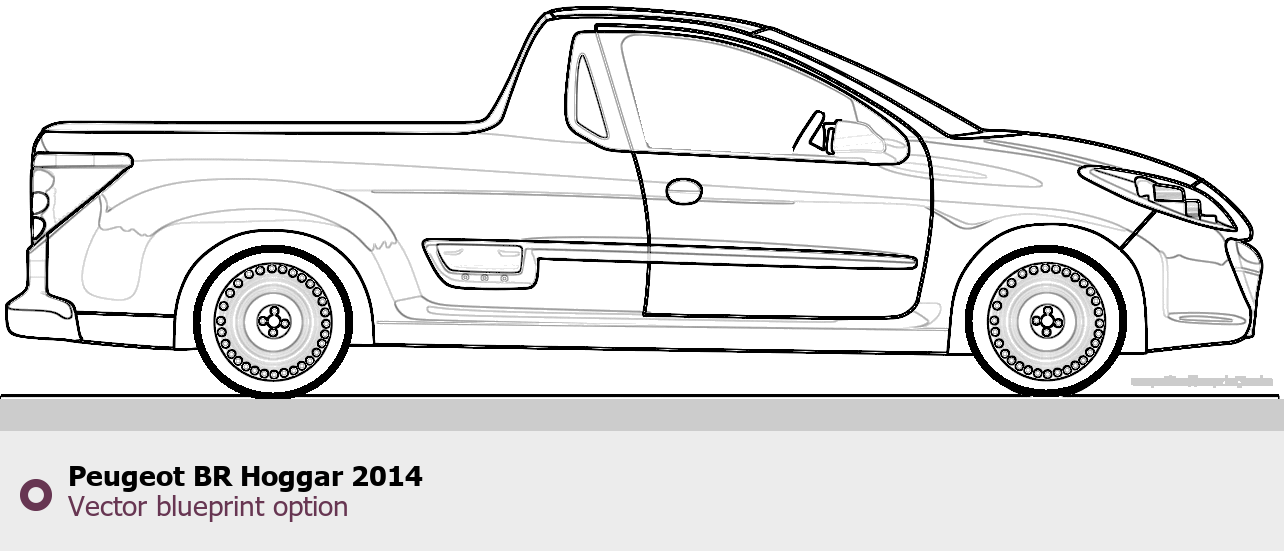 Raster blueprint of the 2014 Peugeot BR Hoggar Tag. This free downloadable image can be used for graphic projects, digital design, and 3D modeling. The file provides accurate exterior proportions of the vehicle. Model year: 2014. Body type: Tag.