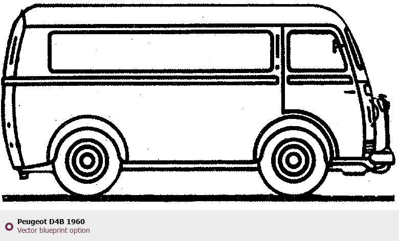 Raster blueprint of the 1960 Peugeot D4B Tag. This free downloadable image can be used for graphic projects, digital design, and 3D modeling. The file provides accurate exterior proportions of the vehicle. Model year: 1960. Body type: Tag.