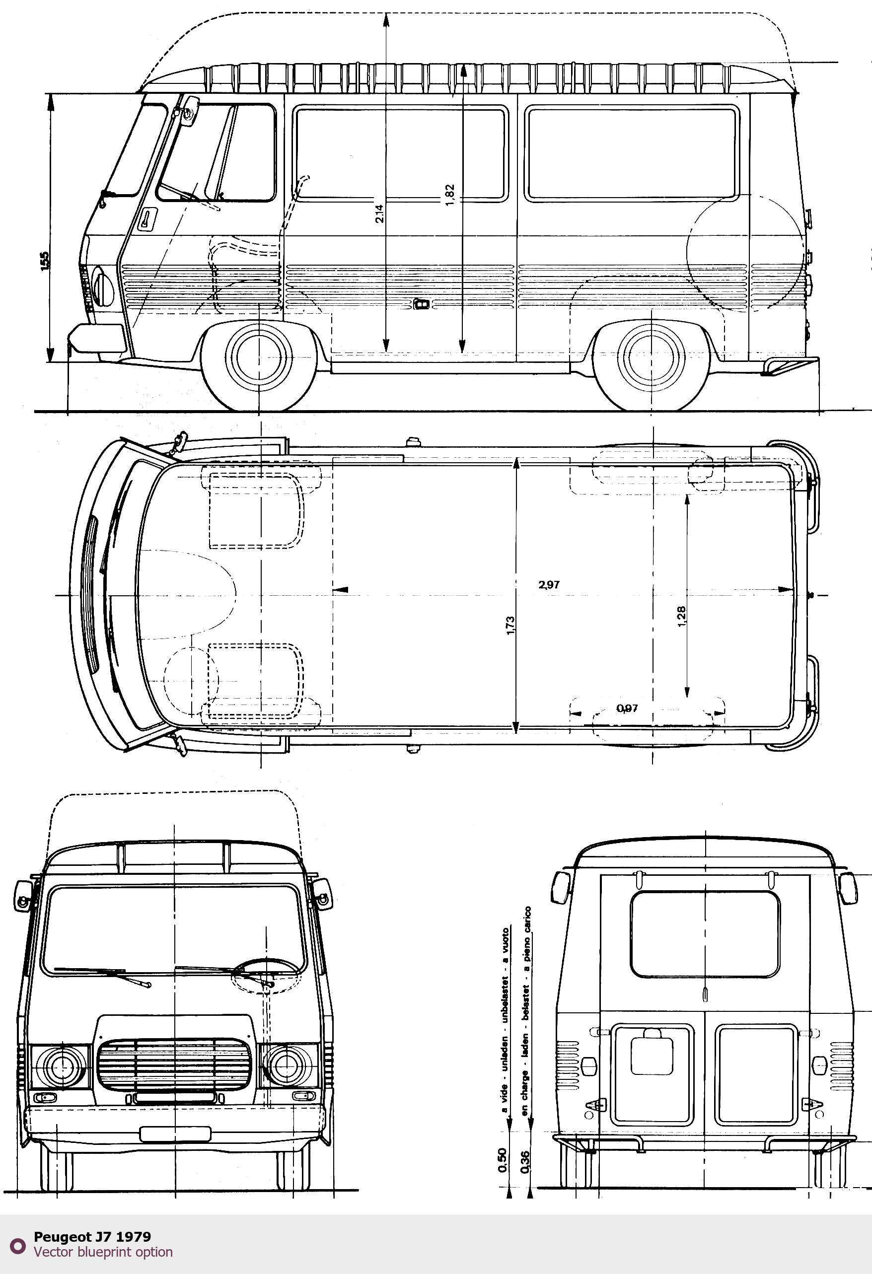 Raster blueprint of the 1979 Peugeot J7 Tag. This free downloadable image can be used for graphic projects, digital design, and 3D modeling. The file provides accurate exterior proportions of the vehicle. Model year: 1979. Body type: Tag.
