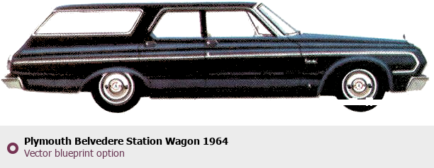 Raster blueprint of the 1964 Plymouth Belvedere Station Wagon Wagon. This free downloadable image can be used for graphic projects, digital design, and 3D modeling. The file provides accurate exterior proportions of the vehicle. Model year: 1964. Body type: Wagon.