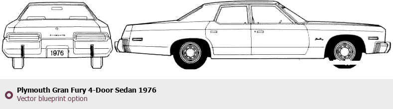Raster blueprint of the 1976 Plymouth Gran Fury 4-Door Sedan Sedan. This free downloadable image can be used for graphic projects, digital design, and 3D modeling. The file provides accurate exterior proportions of the vehicle. Model year: 1976. Body type: Sedan.