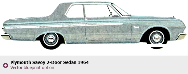 Raster blueprint of the 1964 Plymouth Savoy 2-Door Sedan Sedan. This free downloadable image can be used for graphic projects, digital design, and 3D modeling. The file provides accurate exterior proportions of the vehicle. Model year: 1964. Body type: Sedan.