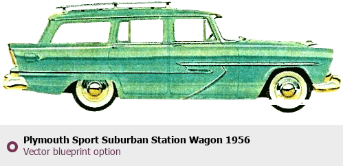 Raster blueprint of the 1956 Plymouth Sport Suburban Station Wagon Wagon. This free downloadable image can be used for graphic projects, digital design, and 3D modeling. The file provides accurate exterior proportions of the vehicle. Model year: 1956. Body type: Wagon.