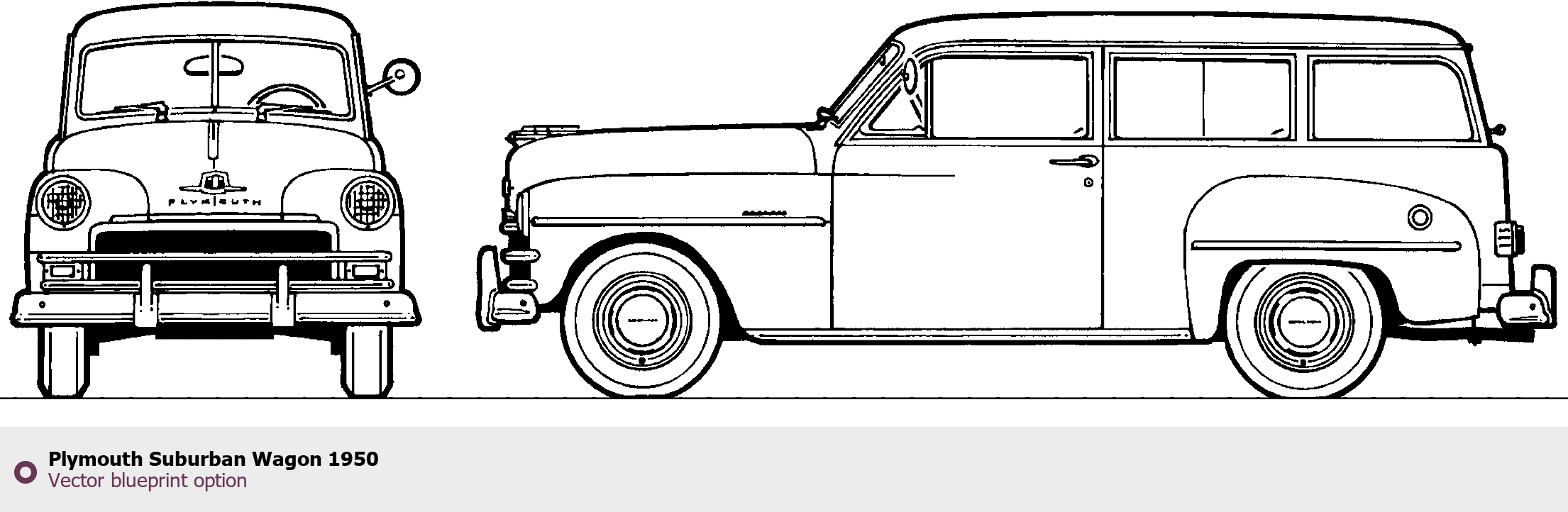 Raster blueprint of the 1950 Plymouth Suburban Wagon Wagon. This free downloadable image can be used for graphic projects, digital design, and 3D modeling. The file provides accurate exterior proportions of the vehicle. Model year: 1950. Body type: Wagon.