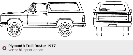 Raster blueprint of the 1977 Plymouth Trail Duster Hatchback. This free downloadable image can be used for graphic projects, digital design, and 3D modeling. The file provides accurate exterior proportions of the vehicle. Model year: 1977. Body type: Hatchback.