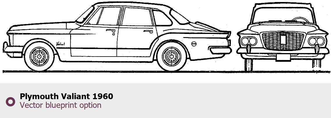 Raster blueprint of the 1960 Plymouth Valiant Tag. This free downloadable image can be used for graphic projects, digital design, and 3D modeling. The file provides accurate exterior proportions of the vehicle. Model year: 1960. Body type: Tag.