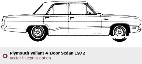 Raster blueprint of the 1972 Plymouth Valiant 4-Door Sedan Sedan. This free downloadable image can be used for graphic projects, digital design, and 3D modeling. The file provides accurate exterior proportions of the vehicle. Model year: 1972. Body type: Sedan.