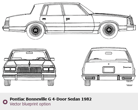 Raster blueprint of the 1982 Pontiac Bonneville G 4-Door Sedan Sedan. This free downloadable image can be used for graphic projects, digital design, and 3D modeling. The file provides accurate exterior proportions of the vehicle. Model year: 1982. Body type: Sedan.