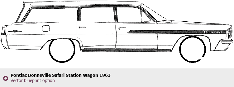 Raster blueprint of the 1963 Pontiac Bonneville Safari Station Wagon Wagon. This free downloadable image can be used for graphic projects, digital design, and 3D modeling. The file provides accurate exterior proportions of the vehicle. Model year: 1963. Body type: Wagon.