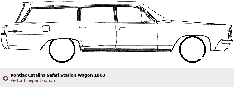 Raster blueprint of the 1963 Pontiac Catalina Safari Station Wagon Wagon. This free downloadable image can be used for graphic projects, digital design, and 3D modeling. The file provides accurate exterior proportions of the vehicle. Model year: 1963. Body type: Wagon.