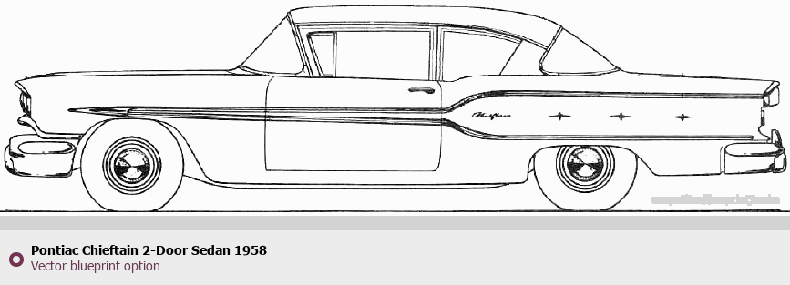 Raster blueprint of the 1958 Pontiac Chieftain 2-Door Sedan Sedan. This free downloadable image can be used for graphic projects, digital design, and 3D modeling. The file provides accurate exterior proportions of the vehicle. Model year: 1958. Body type: Sedan.