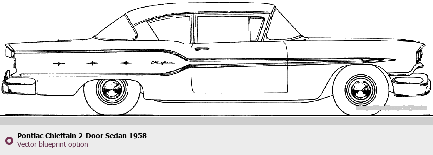 Raster blueprint of the 1958 Pontiac Chieftain 2-Door Sedan Sedan. This free downloadable image can be used for graphic projects, digital design, and 3D modeling. The file provides accurate exterior proportions of the vehicle. Model year: 1958. Body type: Sedan.