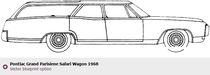 Raster blueprint of the 1968 Pontiac Grand Parisiene Safari Wagon Wagon. This free downloadable image can be used for graphic projects, digital design, and 3D modeling. The file provides accurate exterior proportions of the vehicle. Model year: 1968. Body type: Wagon.