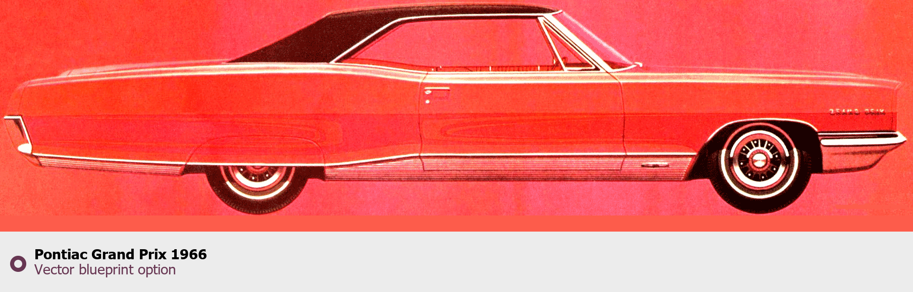 Raster blueprint of the 1966 Pontiac Grand Prix Coupe. This free downloadable image can be used for graphic projects, digital design, and 3D modeling. The file provides accurate exterior proportions of the vehicle. Model year: 1966. Body type: Coupe.