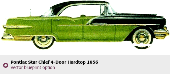 Raster blueprint of the 1956 Pontiac Star Chief 4-Door Hardtop Tag. This free downloadable image can be used for graphic projects, digital design, and 3D modeling. The file provides accurate exterior proportions of the vehicle. Model year: 1956. Body type: Tag.