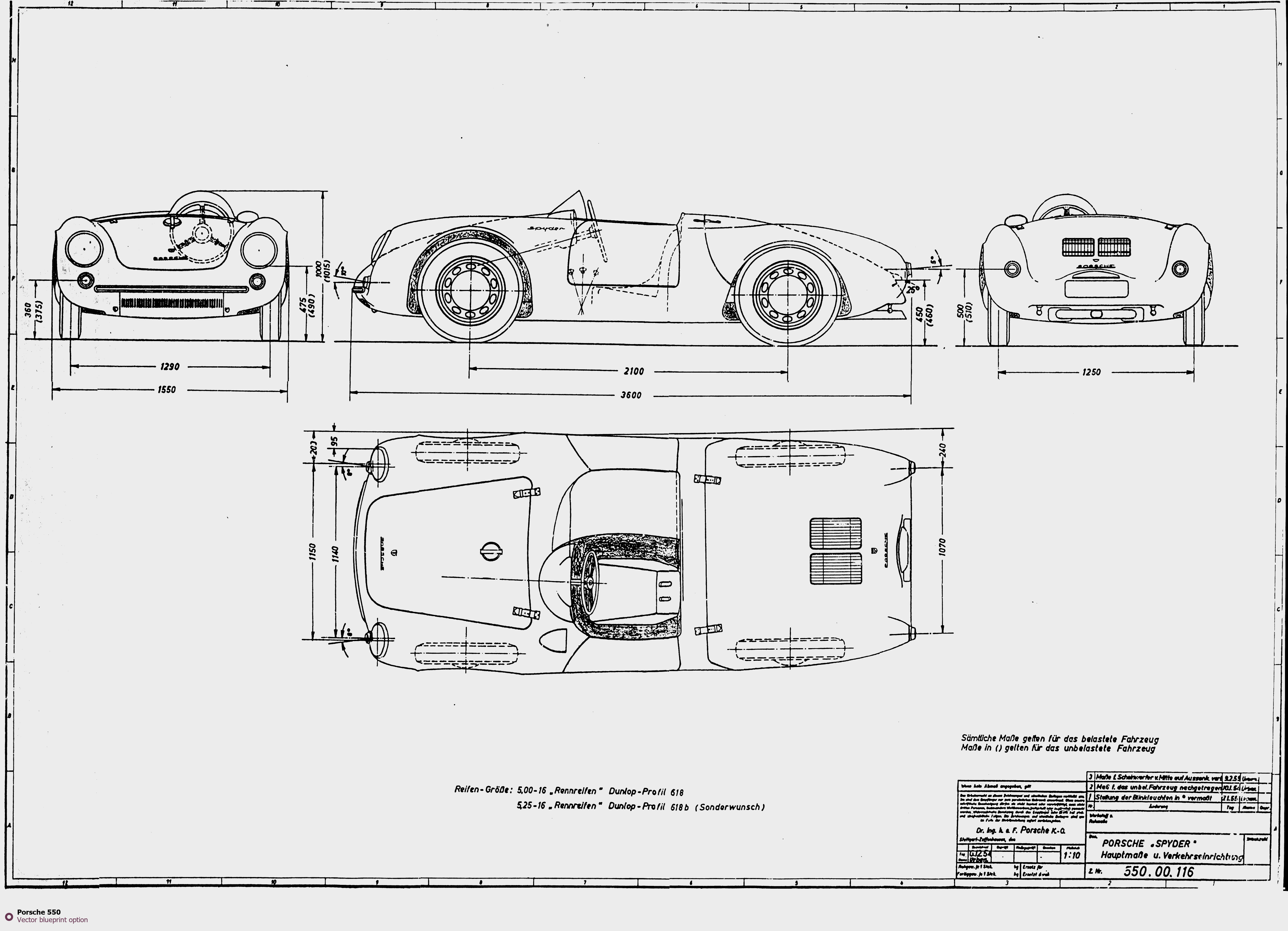 Raster blueprint of the Porsche 550 Tag. This free downloadable image can be used for graphic projects, digital design, and 3D modeling. The file provides accurate exterior proportions of the vehicle. Body type: Tag.
