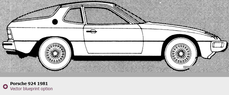 Raster blueprint of the 1981 Porsche 924 Coupe. This free downloadable image can be used for graphic projects, digital design, and 3D modeling. The file provides accurate exterior proportions of the vehicle. Model year: 1981. Body type: Coupe.