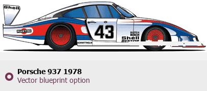 Raster blueprint of the 1978 Porsche 937 Tag. This free downloadable image can be used for graphic projects, digital design, and 3D modeling. The file provides accurate exterior proportions of the vehicle. Model year: 1978. Body type: Tag.