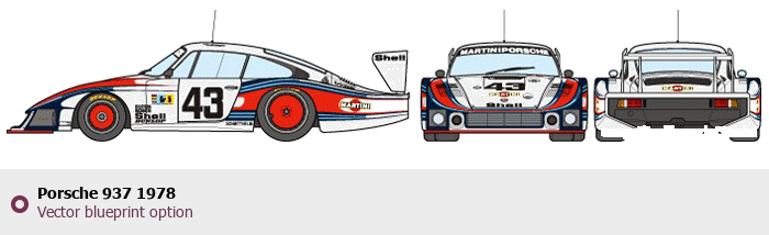 Raster blueprint of the 1978 Porsche 937 Tag. This free downloadable image can be used for graphic projects, digital design, and 3D modeling. The file provides accurate exterior proportions of the vehicle. Model year: 1978. Body type: Tag.
