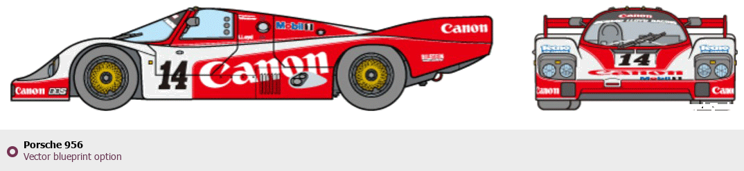 Raster blueprint of the Porsche 956 Tag. This free downloadable image can be used for graphic projects, digital design, and 3D modeling. The file provides accurate exterior proportions of the vehicle. Body type: Tag.