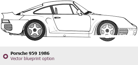 Raster blueprint of the 1986 Porsche 959 Tag. This free downloadable image can be used for graphic projects, digital design, and 3D modeling. The file provides accurate exterior proportions of the vehicle. Model year: 1986. Body type: Tag.