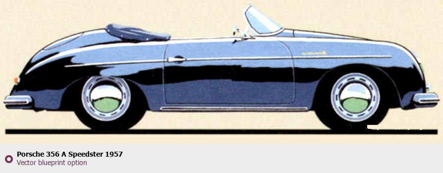 Raster blueprint of the 1957 Porsche 356 A Speedster Tag. This free downloadable image can be used for graphic projects, digital design, and 3D modeling. The file provides accurate exterior proportions of the vehicle. Model year: 1957. Body type: Tag.