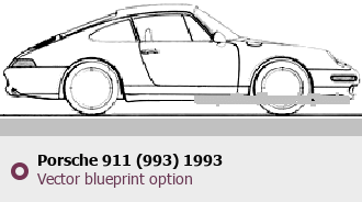 Raster blueprint of the 1993 Porsche 911 (993) Tag. This free downloadable image can be used for graphic projects, digital design, and 3D modeling. The file provides accurate exterior proportions of the vehicle. Model year: 1993. Body type: Tag.