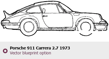 Raster blueprint of the 1973 Porsche 911 Carrera 2.7 Tag. This free downloadable image can be used for graphic projects, digital design, and 3D modeling. The file provides accurate exterior proportions of the vehicle. Model year: 1973. Body type: Tag.