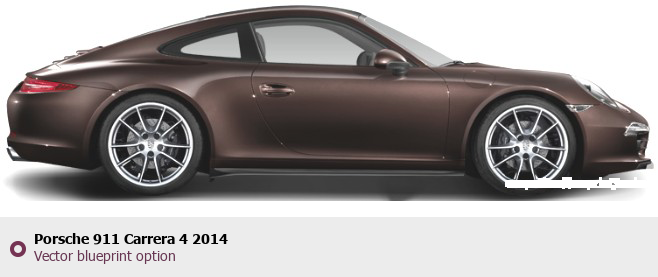 Raster blueprint of the 2014 Porsche 911 Carrera 4 Tag. This free downloadable image can be used for graphic projects, digital design, and 3D modeling. The file provides accurate exterior proportions of the vehicle. Model year: 2014. Body type: Tag.