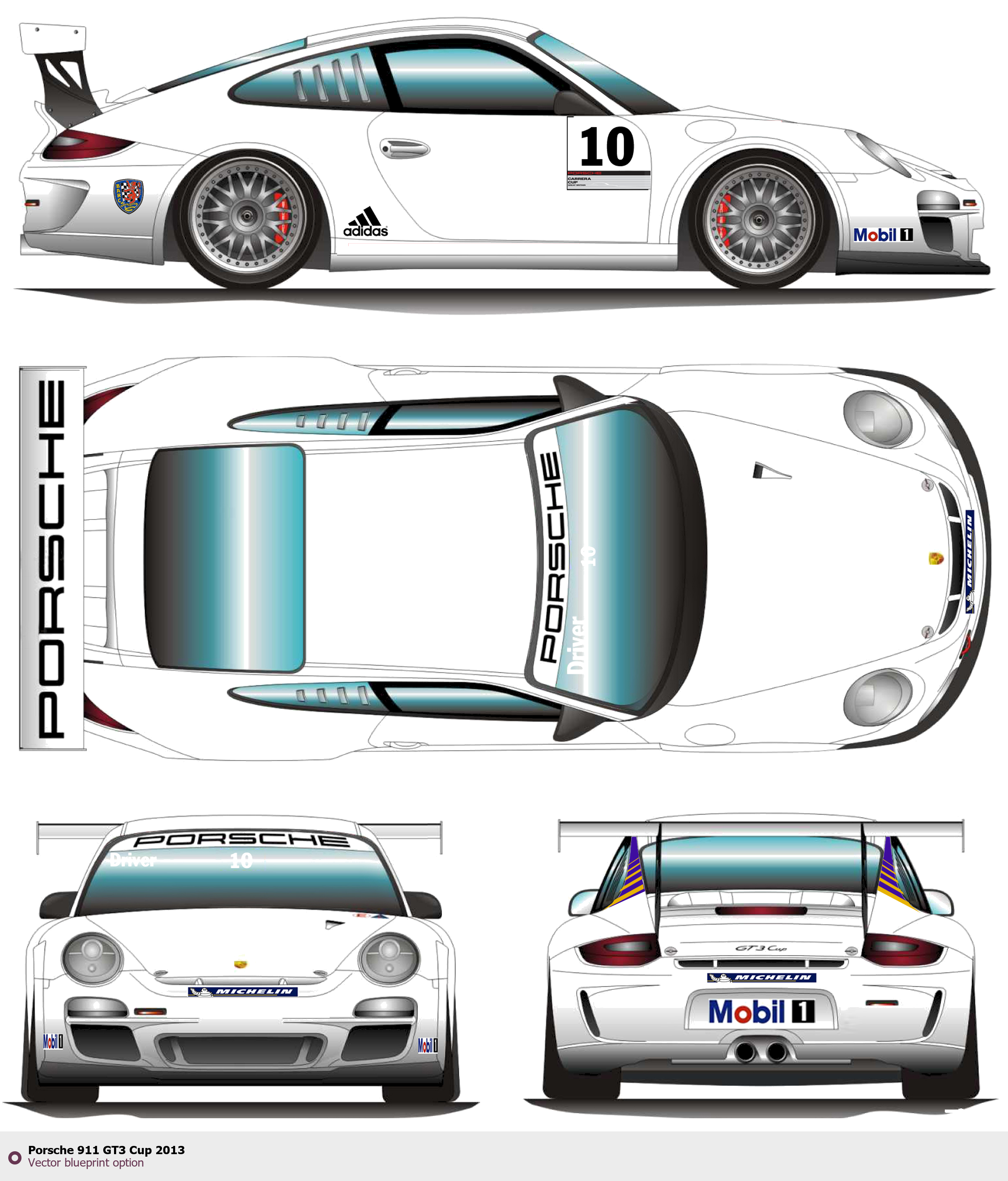 Raster blueprint of the 2013 Porsche 911 GT3 Cup Tag. This free downloadable image can be used for graphic projects, digital design, and 3D modeling. The file provides accurate exterior proportions of the vehicle. Model year: 2013. Body type: Tag.