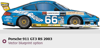 Raster blueprint of the 2003 Porsche 911 GT3 RS Tag. This free downloadable image can be used for graphic projects, digital design, and 3D modeling. The file provides accurate exterior proportions of the vehicle. Model year: 2003. Body type: Tag.