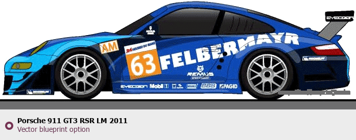 Raster blueprint of the 2011 Porsche 911 GT3 RSR LM Tag. This free downloadable image can be used for graphic projects, digital design, and 3D modeling. The file provides accurate exterior proportions of the vehicle. Model year: 2011. Body type: Tag.