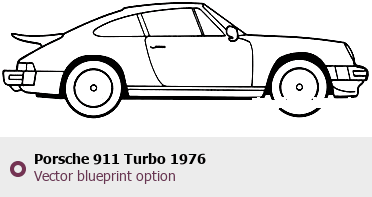 Raster blueprint of the 1976 Porsche 911 Turbo Coupe. This free downloadable image can be used for graphic projects, digital design, and 3D modeling. The file provides accurate exterior proportions of the vehicle. Model year: 1976. Body type: Coupe.