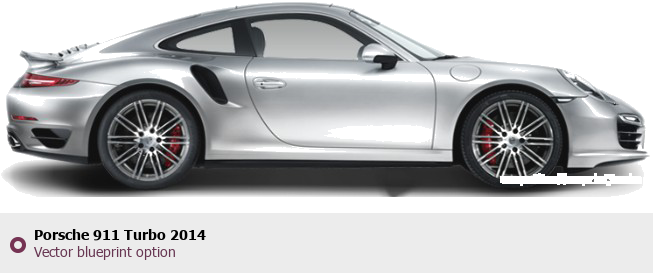 Raster blueprint of the 2014 Porsche 911 Turbo Coupe. This free downloadable image can be used for graphic projects, digital design, and 3D modeling. The file provides accurate exterior proportions of the vehicle. Model year: 2014. Body type: Coupe.