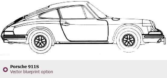 Raster blueprint of the Porsche 911S Tag. This free downloadable image can be used for graphic projects, digital design, and 3D modeling. The file provides accurate exterior proportions of the vehicle. Body type: Tag.