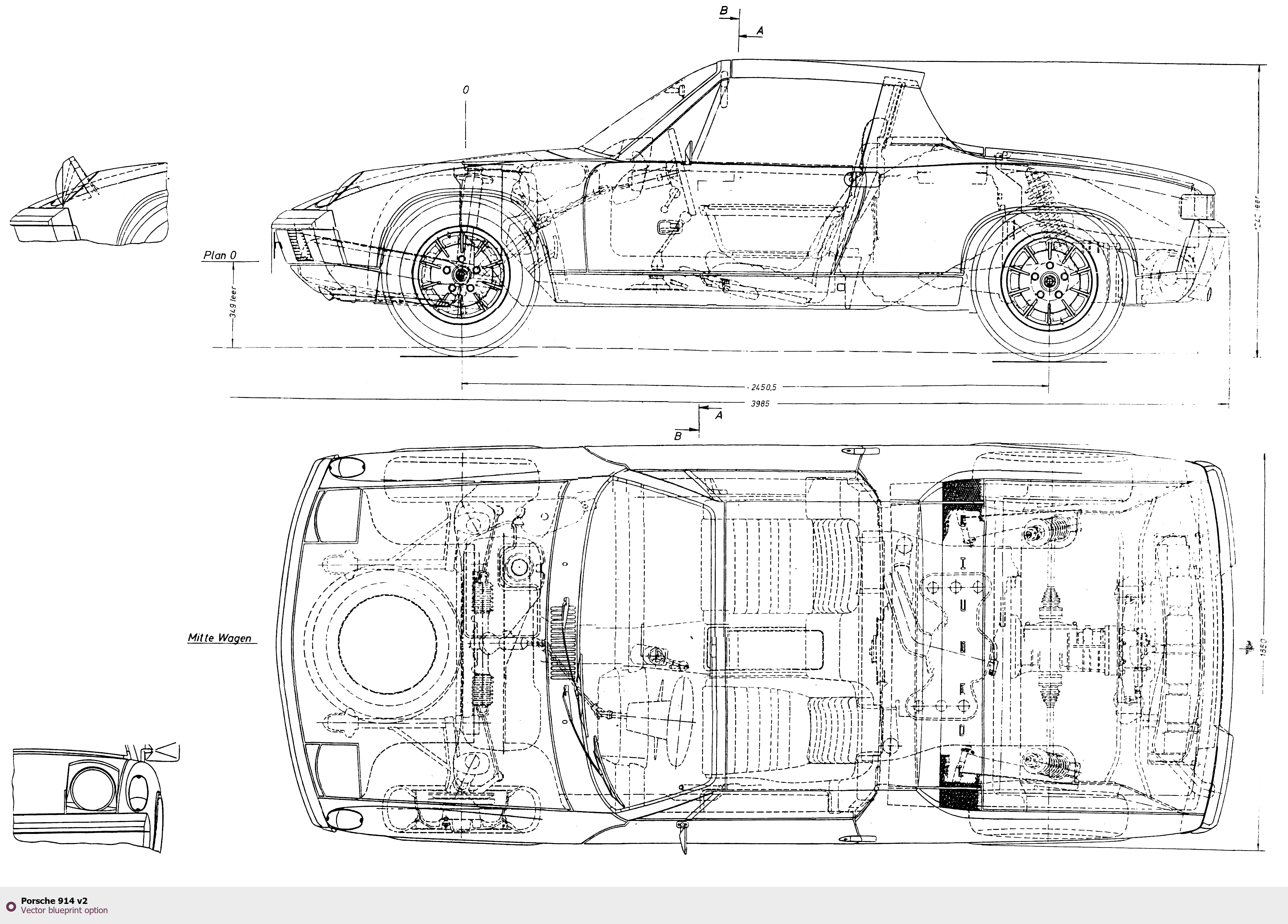 Raster blueprint of the Porsche 914 v2 Tag. This free downloadable image can be used for graphic projects, digital design, and 3D modeling. The file provides accurate exterior proportions of the vehicle. Body type: Tag.