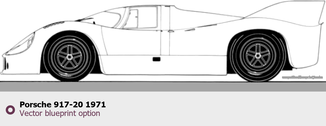 Raster blueprint of the 1971 Porsche 917-20 Tag. This free downloadable image can be used for graphic projects, digital design, and 3D modeling. The file provides accurate exterior proportions of the vehicle. Model year: 1971. Body type: Tag.