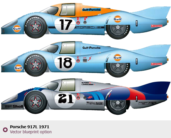 Raster blueprint of the 1971 Porsche 917L Tag. This free downloadable image can be used for graphic projects, digital design, and 3D modeling. The file provides accurate exterior proportions of the vehicle. Model year: 1971. Body type: Tag.