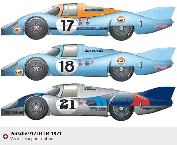 Raster blueprint of the 1971 Porsche 917LH LM Tag. This free downloadable image can be used for graphic projects, digital design, and 3D modeling. The file provides accurate exterior proportions of the vehicle. Model year: 1971. Body type: Tag.