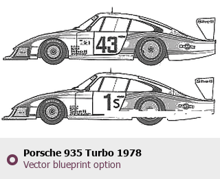 Raster blueprint of the 1978 Porsche 935 Turbo Tag. This free downloadable image can be used for graphic projects, digital design, and 3D modeling. The file provides accurate exterior proportions of the vehicle. Model year: 1978. Body type: Tag.