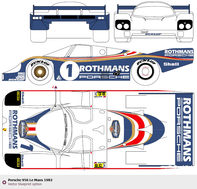 Raster blueprint of the 1982 Porsche 956 Le Mans Tag. This free downloadable image can be used for graphic projects, digital design, and 3D modeling. The file provides accurate exterior proportions of the vehicle. Model year: 1982. Body type: Tag.