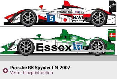 Raster blueprint of the 2007 Porsche RS Spyider LM Tag. This free downloadable image can be used for graphic projects, digital design, and 3D modeling. The file provides accurate exterior proportions of the vehicle. Model year: 2007. Body type: Tag.