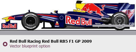 Raster blueprint of the 2009 Red Bull Racing Red Bull RB5 F1 GP Formula. This free downloadable image can be used for graphic projects, digital design, and 3D modeling. The file provides accurate exterior proportions of the vehicle. Model year: 2009. Body type: Formula.