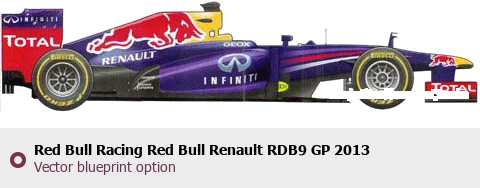 Raster blueprint of the 2013 Red Bull Racing Red Bull Renault RDB9 GP Formula. This free downloadable image can be used for graphic projects, digital design, and 3D modeling. The file provides accurate exterior proportions of the vehicle. Model year: 2013. Body type: Formula.