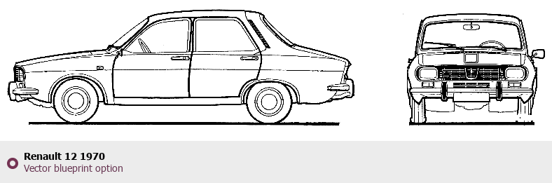 Raster blueprint of the 1970 Renault 12 Tag. This free downloadable image can be used for graphic projects, digital design, and 3D modeling. The file provides accurate exterior proportions of the vehicle. Model year: 1970. Body type: Tag.