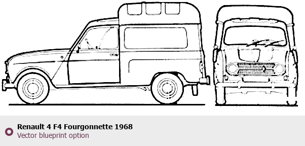 Raster blueprint of the 1968 Renault 4 F4 Fourgonnette Sedan. This free downloadable image can be used for graphic projects, digital design, and 3D modeling. The file provides accurate exterior proportions of the vehicle. Model year: 1968. Body type: Sedan.