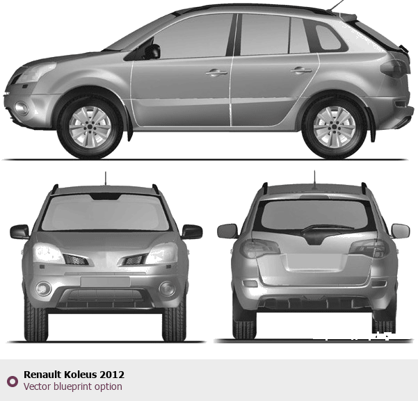 Raster blueprint of the 2012 Renault Koleus Tag. This free downloadable image can be used for graphic projects, digital design, and 3D modeling. The file provides accurate exterior proportions of the vehicle. Model year: 2012. Body type: Tag.